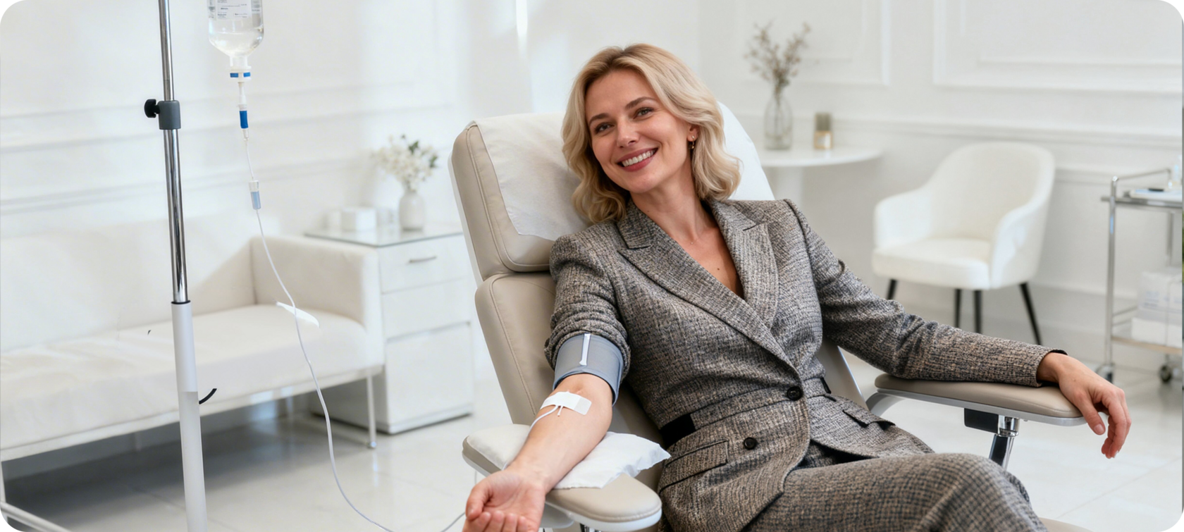 Инфузионная терапия начинает работать уже во время процедуры — без этапа переваривания и ожидания усвоения.